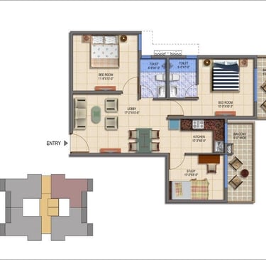2BHK +STUDY